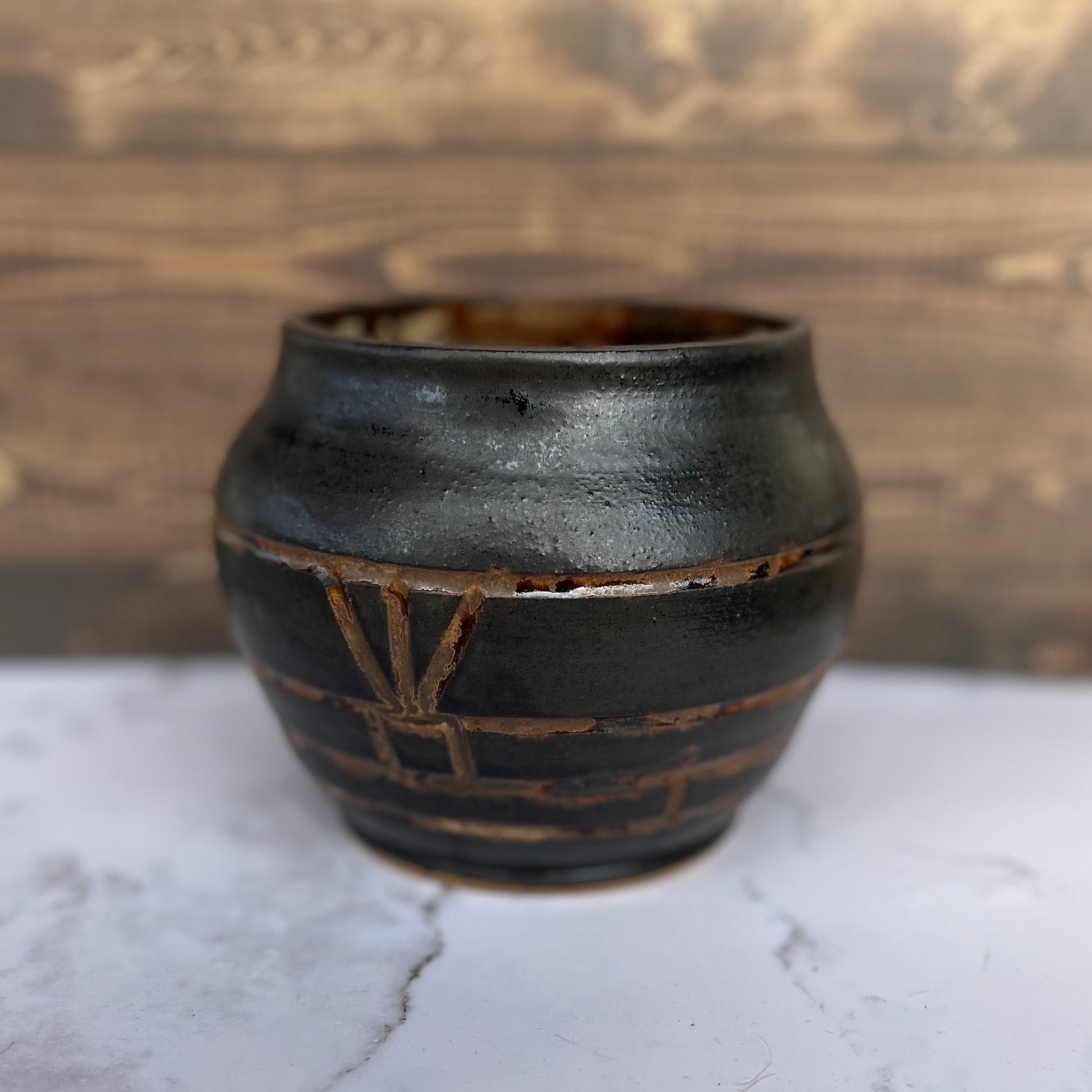 - Brown carved vase